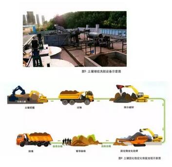 国外有大型土壤淋洗工厂,设备规模大,处理能力强。国内也有各种土壤淋洗技术设备研发和应用示范,但大规模工程应用并不多见。图5为“十一五”863项目研发的一套土壤增效洗脱设备系统,并在实际工程中得到应用。图6为国内采用稳定化/固化技术治理重金属污染土壤的修复流程图。相信通过未来5-10年不断努力,一定能够使我国污染地块土壤修复技术与装备研发能力达到国际先进水平,形成具有中国特色的土壤修复技术体系,大大推动土壤修复产业的发展。