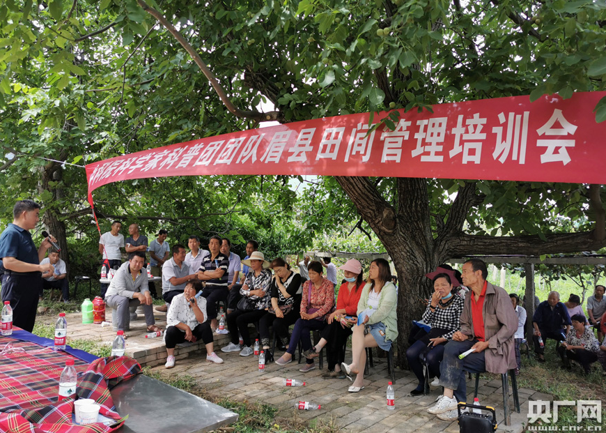 央广网西安6月14日消息(记者雷恺)中国科学院老科学家科普团专家们13日来到秦岭太白山北麓陕西眉县猕猴桃果园的田间地头,为种植专业户、果农讲解传授猕猴桃的病虫害绿色防治关键技术要领。