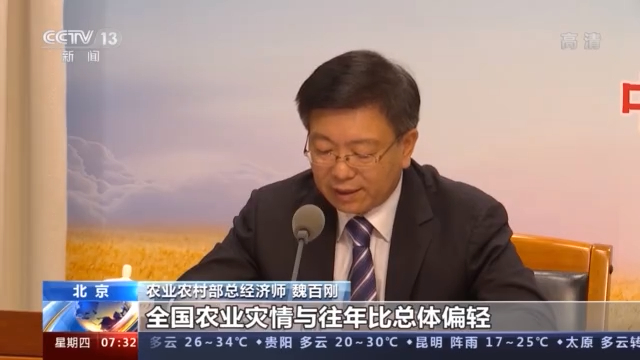 农业农村部总经济师 魏百刚:全国农业灾情与往年比总体偏轻,6月以来,全国农作物累计受灾7200多万亩,比去年同期少3950多万亩。