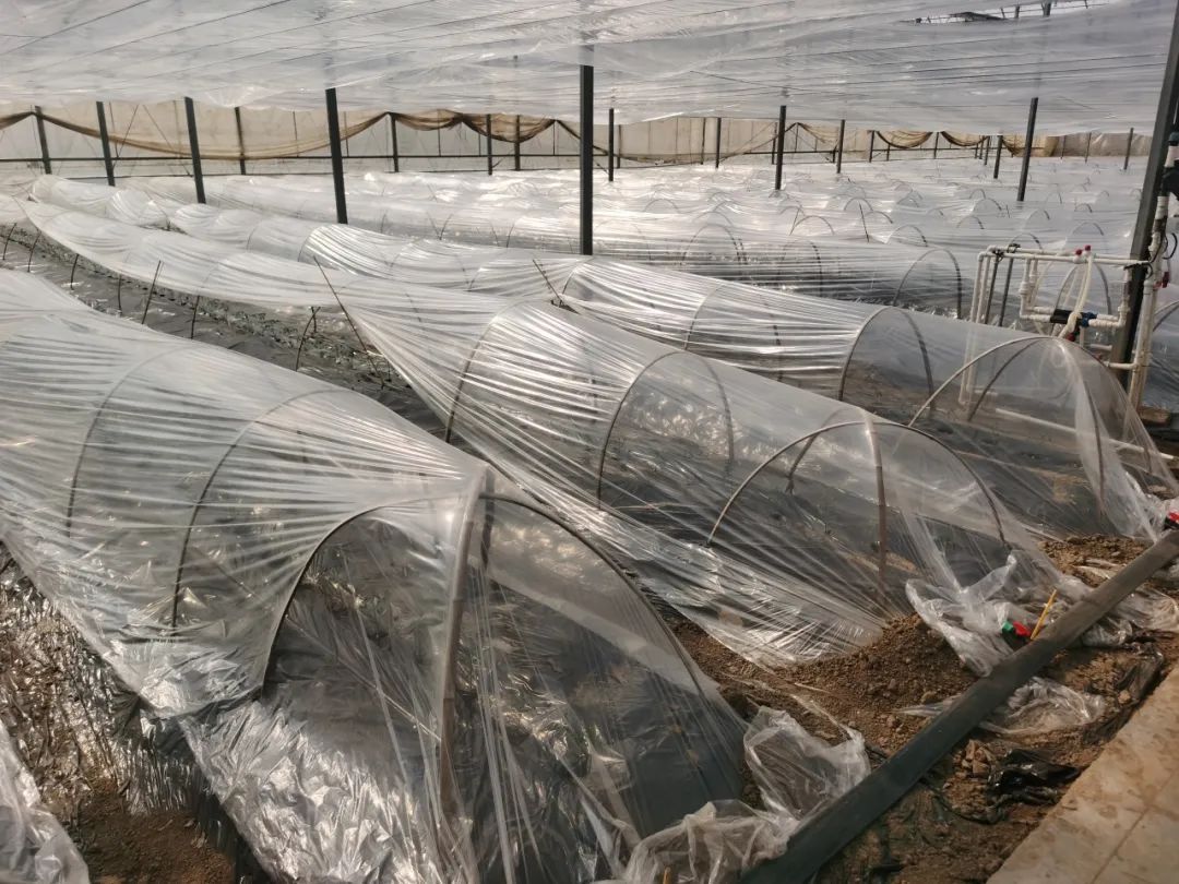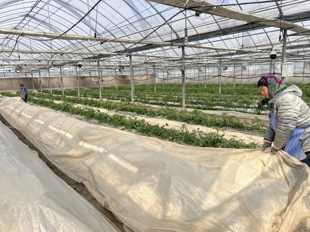 目前正值草莓采收销售、西甜瓜秧苗进入伸蔓期的关键阶段,专家组制定“抢收+保苗”双线策略,督促农户及时采收成熟草莓,及时清理田间被冻坏的花果,减少病害发生,采用的五膜覆盖对年前定植的西甜瓜秧苗进行保温,夜间采用两层小拱棚的覆盖防止凌晨极端低温冻害。